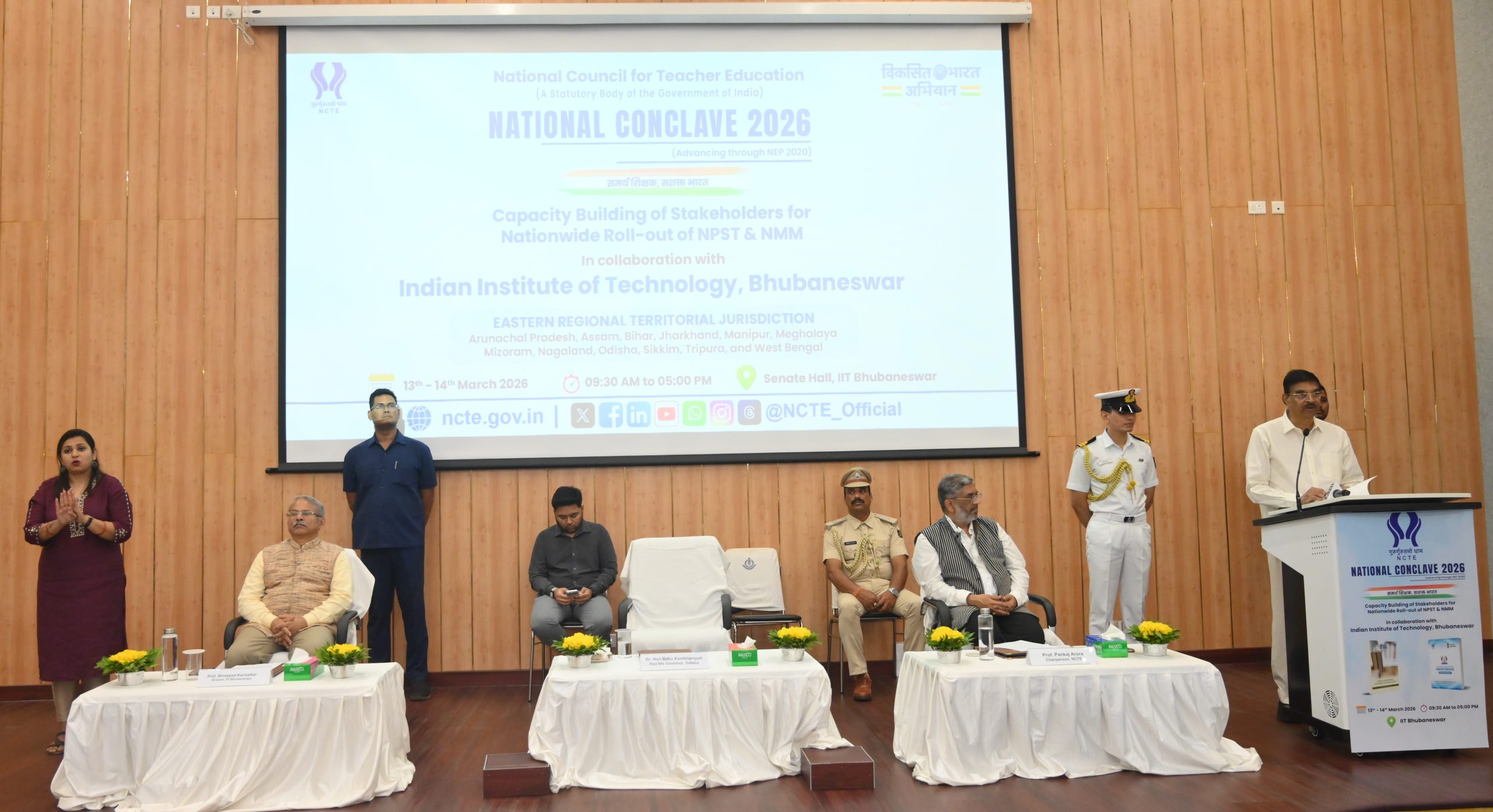 ଭୁବନେଶ୍ୱର, ୧୩/୦୩: ଶିକ୍ଷକମାନଙ୍କ ପାଇଁ ଜାତୀୟ ବୃତ୍ତିଗତ ମାନଦଣ୍ଡ (NPST) ଏବଂ ପରାମର୍ଶ ଦେବା ପାଇଁ ଜାତୀୟ ମିଶନ (NMM) ର ଦେଶବ୍ୟାପୀ କାର୍ଯ୍ୟାନ୍ୱୟନ ପାଇଁ ଅଂଶୀଦାରମାନଙ୍କ କ୍ଷମତା ବିକାଶ ଉପରେ ଏକ ଦୁଇ ଦିନିଆ ଜାତୀୟ ସମ୍ମିଳନୀ ଆଇଆଇଟି ଭୁବନେଶ୍ୱରରେ ସଫଳତାର ସହିତ ଉଦ୍ଘାଟିତ ହୋଇଛି। ଭାରତ ସରକାରଙ୍କ ଶିକ୍ଷା ମନ୍ତ୍ରଣାଳୟ ଅଧୀନରେ ଏକ ସାମ୍ବିଧାନିକ ସଂସ୍ଥା, ଜାତୀୟ ଶିକ୍ଷକ ଶିକ୍ଷା ପରିଷଦ (NCTE) ଦ୍ୱାରା ଆୟୋଜିତ ଏହି କାର୍ଯ୍ୟକ୍ରମ ଭାରତୀୟ ପ୍ରଯୁକ୍ତିବିଦ୍ୟା ସଂସ୍ଥାନ ଭୁବନେଶ୍ୱରର ସହଯୋଗରେ ୧୩-୧୪ ମାର୍ଚ୍ଚ ୨୦୨୬ ରେ ଆଇଆଇଟି ଭୁବନେଶ୍ୱରର ସିନେଟ ହଲରେ ଅନୁଷ୍ଠିତ ହେଉଛି।