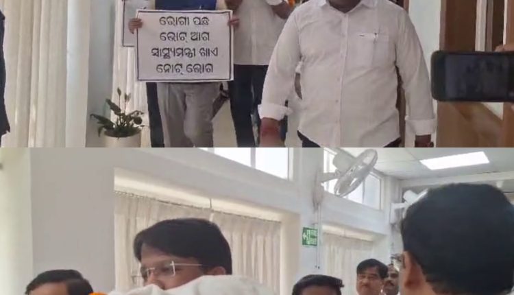 ବିଧାନସଭା ଗୃହ ଭିତରେ ବିରୋଧୀ ସଦସ୍ୟ କୋକେଇ ଶୋଭାଯାତ୍ରା କରିଛନ୍ତି। କୋକେଇ ଧରି ରିପୋର୍ଟର ଡେକ୍ସ ଚାରିପଟେ ବୁଲିଲେ ବିରୋଧୀ ବିଜେଡ଼ି ବିଧାୟକ। ‘ରାମ ନାମ ସତ୍ୟ ହେ’ ଧ୍ୱନିରେ ପ୍ରକମ୍ପିତ ହେଲା ବିଧାନସଭା ପରିସର। ପ୍ରଶ୍ନକାଳ ଚାଲି ନ ପାରିବାରୁ ଗୃହକୁ ଦିନ ୧୧ଟା ୩୦ ଯାଏଁ ମୁଲତବି ଘୋଷଣା କରିଛନ୍ତି ବାଚସ୍ପତି ସୁରମା ପାଢ଼ୀ।