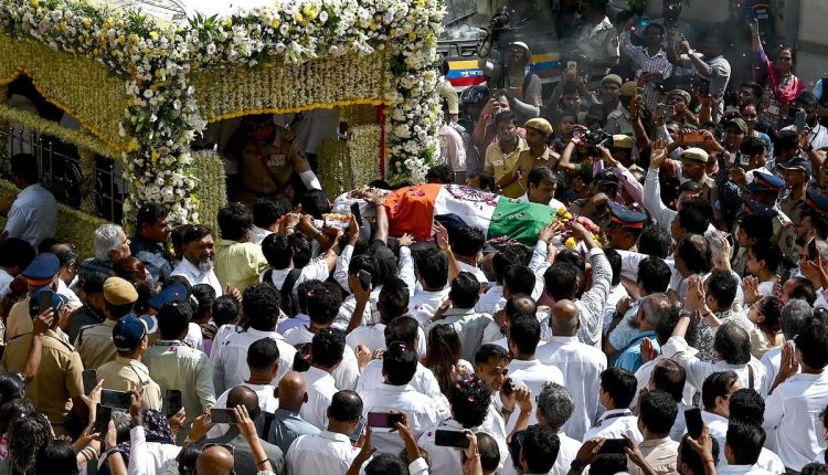ଗତକାଲି ମୁମ୍ବାଇର ବ୍ରିଚ୍ କ୍ୟାଣ୍ଡି ହସ୍ପିଟାଲରେ ୯୨ ବର୍ଷ ବୟସରେ ଶେଷ ନିଶ୍ୱାସ ତ୍ୟାଗ କରିଥିବା ଆଶା ଭୋସଲେଙ୍କୁ ଶ୍ରଦ୍ଧାଞ୍ଜଳି ଅର୍ପଣ କରିଥିଲେ ବିଶିଷ୍ଟ ବ୍ୟକ୍ତି ବିଶେଷ। ମହାରାଷ୍ଟ୍ର ମୁଖ୍ୟମନ୍ତ୍ରୀ ଦେବେନ୍ଦ୍ର ଫଡନାଭିସ୍ ଶିବାଜୀ ପାର୍କରେ ଉପମୁଖ୍ୟମନ୍ତ୍ରୀ ଏକନାଥ ସିନ୍ଦେ ଏବଂ ସୁନେତ୍ରା ପାୱାରଙ୍କ ସହ ଆଶା ଭୋସଲେଙ୍କ ଅନ୍ତିମ ସଂସ୍କାରରେ ଯୋଗ ଦେଇଥିଲେ।