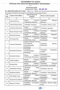 ଭୁବନେଶ୍ୱର, ୩୦/୦୪: OAS ସ୍ତରରେ ଅଦଳବଦଳ କଲେ ରାଜ୍ୟ ସରକାର। ୨୯ OAS ଅଫିସରଙ୍କ ବଦଳି ନେଇ ରାଜସ୍ବ ବିଭାଗ ପକ୍ଷରୁ ସୂଚନା ମିଳିଛି। ଉପଜିଲ୍ଲାପାଳ ଓ ତହସିଲଦାର ସ୍ତରରେ ଅଦଳବଦଳ କରିଛନ୍ତି ରାଜ୍ୟ ସରକାର।