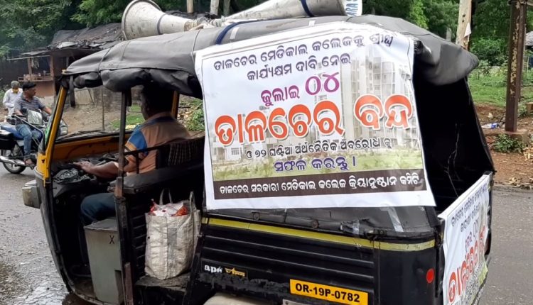 ତାଳଚେରରେ ମେଡିକାଲ କଲେଜକୁ ତୁରନ୍ତ କାର୍ଯ୍ୟକ୍ଷମ କରିବା ଏବଂ ସରକାର ମେଡିକାଲ ଚଳାଇବାର ତାରିଖ ଘୋଷଣା ଦାବିରେ ୪ ତାରିଖରେ ୧୨ ଘଣ୍ଟିଆ ତାଳଚେର ବନ୍ଦର ଡାକରା ଦେଇଛି ତାଳଚେର ମେଡିକାଲ କଲେଜ କ୍ରିୟାନୁଷ୍ଠାନ କମିଟି ।