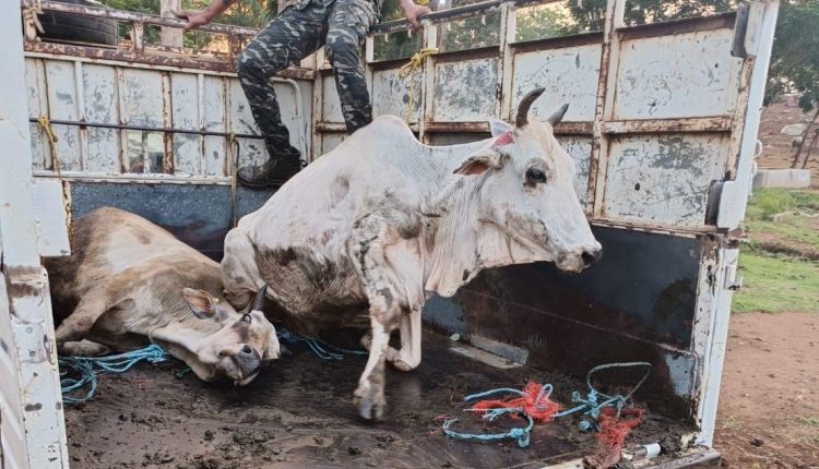 ବେଆଇନ ରୂପେ ଗୋ ଚାଲାଣ କରୁଥିବା ବେଳେ ପୋଲିସର ଚଢାଉ