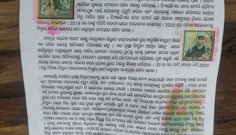 ପୁଲିସ୍ ଓ ମାଓବାଦୀଙ୍କ ଗୁଳି ବିନିମୟ ଘଟଣା ପରେ ଆଜି ଶନିବାର ସକାଳୁ ସକାଳୁ ପୁଣି ସେଇ ଗାଁରେ ମାଓ ପୋଷ୍ଟର ଦେଖିବାକୁ ମିଳିଛି