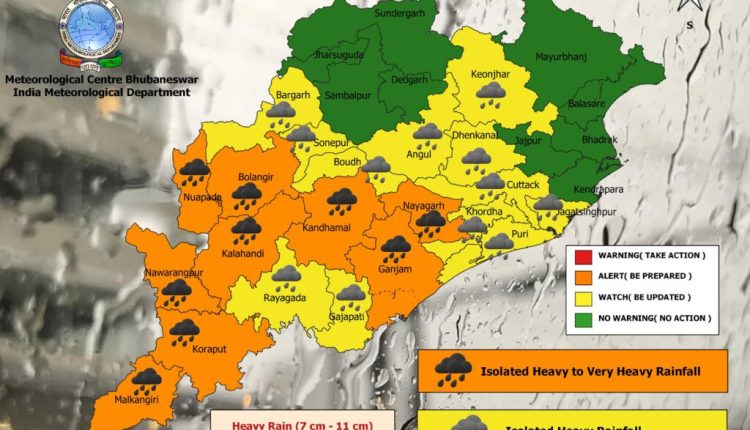 ରାୟଗଡ଼ା, ଗଜପତି, ଖୋର୍ଦ୍ଧା, ପୁରୀ, କଟକ, ଜଗତସିଂହପୁର, ବୌଦ୍ଧ, ସୋନପୁର, ବରଗଡ଼, ଅନୁଗୁଳ, ଢେଙ୍କାନାଳ ଓ କେନ୍ଦୁଝର ଜିଲ୍ଲାର ବିଭିନ୍ନ ସ୍ଥାନରେ ପ୍ରବଳ ବର୍ଷା ହେବାର ସମ୍ଭାବନା ରହିଛି ବୋଲି ଆଜି ଅପରାହ୍ନରେ ଏକ ସତର୍କ ସୂଚନା ଜାରି କରିଛି ଭୁବନେଶ୍ୱରସ୍ଥିତ ଆଞ୍ଚଳିକ ପାଣିପାଗ ବିଜ୍ଞାନ କେନ୍ଦ୍ର। ଏହାକୁ ଦୃଷ୍ଟିରେ ରଖି ଭୁବନେଶ୍ୱର ସ୍ଥିତ ଆଞ୍ଚଳିକ ପାଣିପାଗ ବିଜ୍ଞାନ କେନ୍ଦ୍ର ପକ୍ଷରୁ ଏହି ଜିଲ୍ଲାଗୁଡ଼ିକ ପାଇଁ ୟେଲୋଓ୍ଵାର୍ଣ୍ଣିଂ ଜାରି କରାଯାଇଛି।